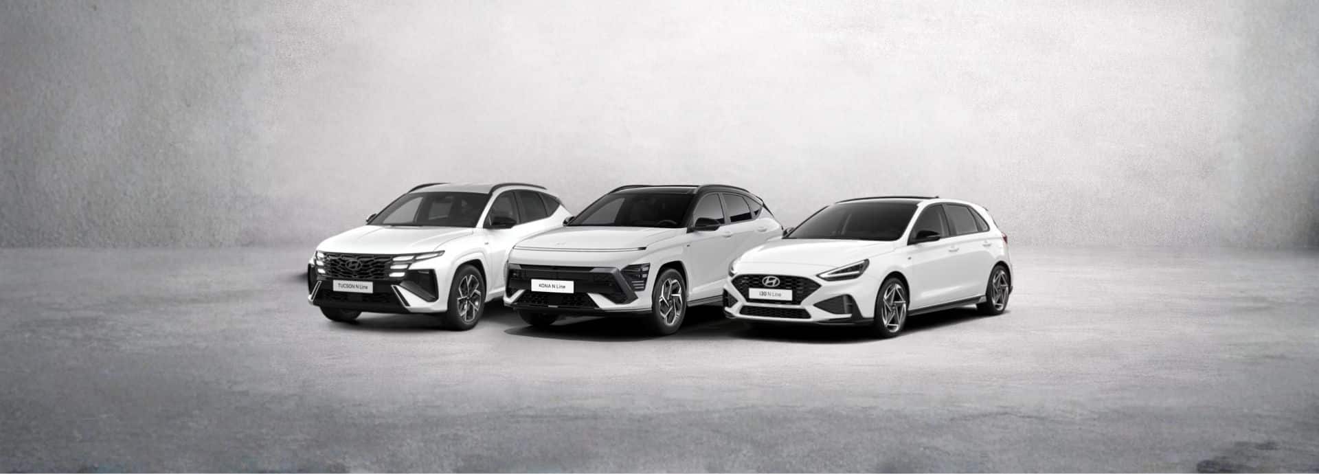 Jetzt wird’s sportlich. Vom kompakten Hyundai i30 über den agilen Lifestyle-SUV Hyundai KONA bis zum vielseitigen Hyundai TUCSON – alle in der attraktiven N Line Ausstattung.