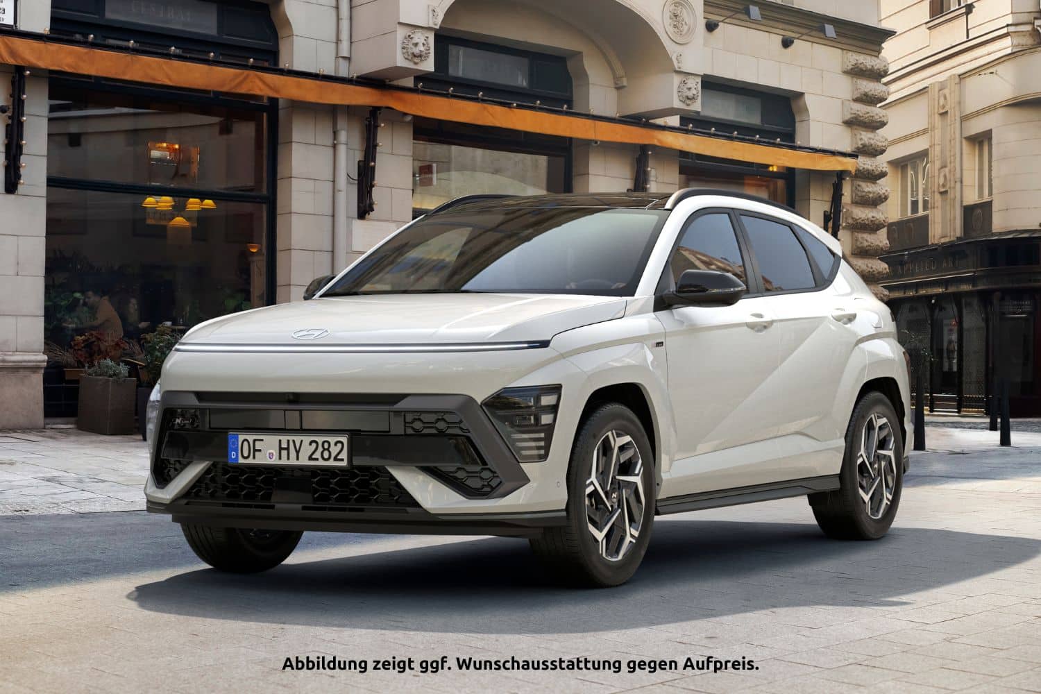 ¹ Ein unverbindliches Leasingbeispiel der HYUNDAI Finance, ein Geschäftsbereich der Hyundai Capital Bank Europe GmbH, Friedrich-Ebert-Anlage 35–37, 60327 Frankfurt am Main. Nach den Leasingbedingungen besteht die Verpflichtung zum Abschluss einer Vollkaskoversicherung. Hyundai KONA 1.6, 110 kW (150 PS), N Line, Frontantrieb, Benzin, Schaltgetriebe, Fahrzeugpreis 27.059,- EUR, einmalige Leasingsonderzahlung 0,- EUR, Laufzeit 48 Monate, Gesamtlaufleistung 48.000 km, 48 mtl. Raten à 159,00 EUR, Gesamtbetrag 7.632,- EUR. Kostenpflichtige Sonderausstattung möglich. Zuzüglich Überführungskosten in Höhe von 1.000,- EUR (separate Berechnung durch das Autohaus).