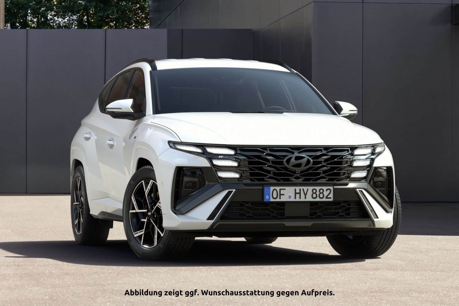 ⁴ Ein unverbindliches Leasingbeispiel der HYUNDAI Finance, ein Geschäftsbereich der Hyundai Capital Bank Europe GmbH, Friedrich-Ebert-Anlage 35–37, 60327 Frankfurt am Main. Nach den Leasingbedingungen besteht die Verpflichtung zum Abschluss einer Vollkaskoversicherung. Hyundai TUCSON 1.6, 176 kW (239 PS), N-Line, Frontantrieb, Benzin, Automatik, Fahrzeugpreis 38.446,- EUR, einmalige Leasingsonderzahlung 0,- EUR, Laufzeit 48 Monate, Gesamtlaufleistung 48.000 km, 48 mtl. Raten à 219,00 EUR, Gesamtbetrag 10.512,- EUR. Kostenpflichtige Sonderausstattung möglich. Zuzüglich Überführungskosten in Höhe von 1.084,- EUR (separate Berechnung durch das Autohaus).