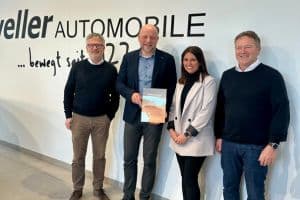 Ein ganz besonderer Moment: Thomas Schiemann, Senior Expert Retail Development von Volvo, überreichte feierlich die Ehrenurkunde zur 20-jährigen Volvo-Partnerschaft an Hans und Jürgen Weller sowie Teamleiterin Natascha Vidackovic.Zwei Jahrzehnte voller Leidenschaft, Innovation und Zusammenarbeit. Das ist nicht nur eine Zahl, sondern eine Erfolgsgeschichte, die verbindet.